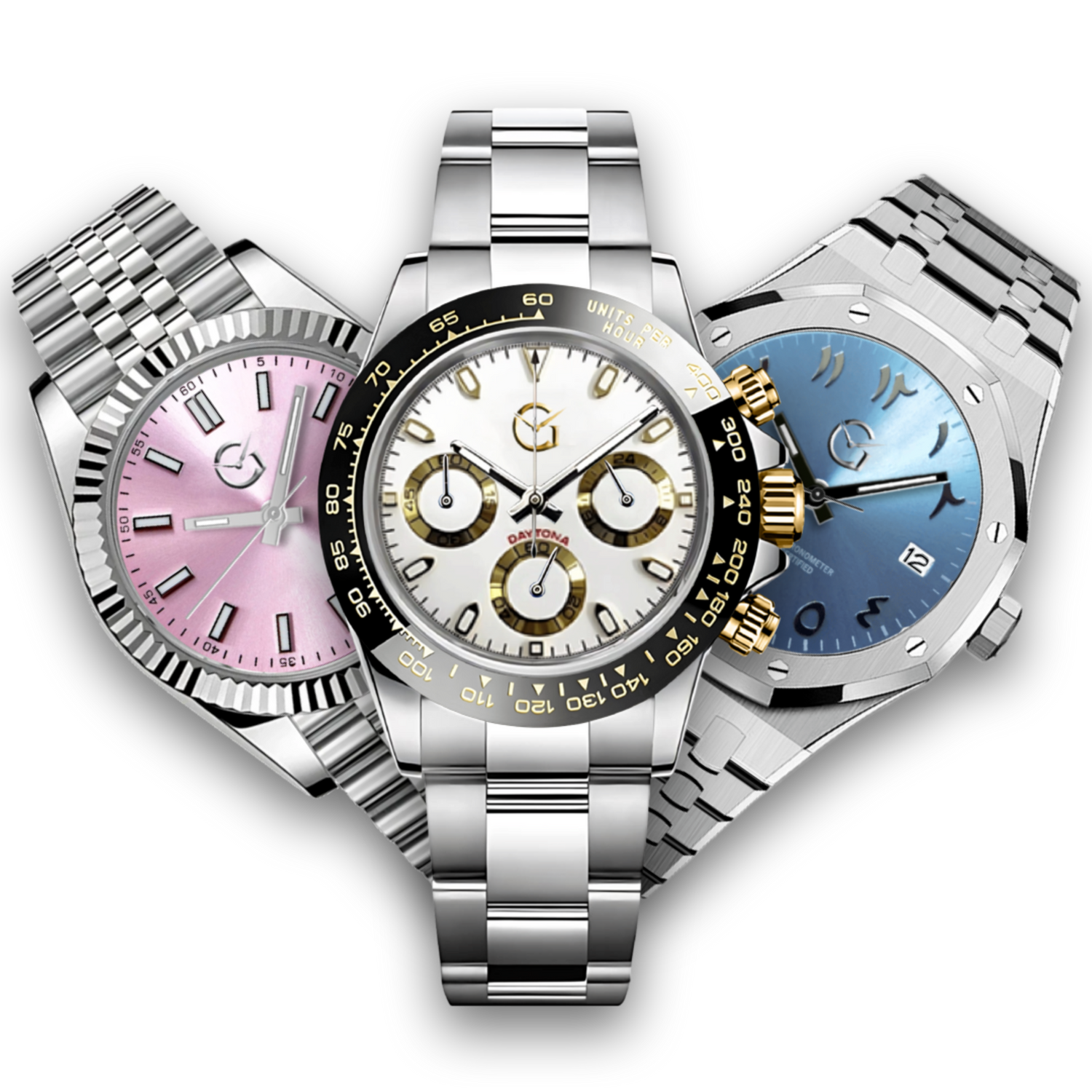 CG Custom Watches vous permet de personnaliser chaque détail : boîtier, cadran, bracelet, lunette… Visualisez votre configuration en direct et passez commande.